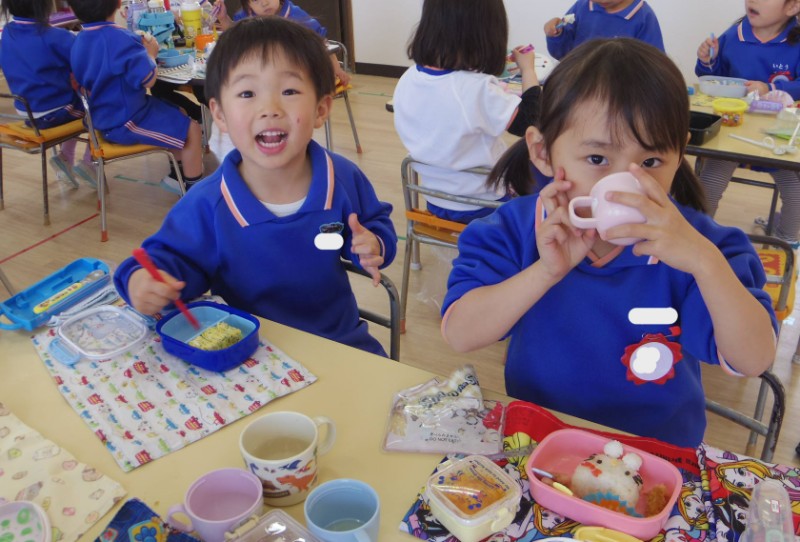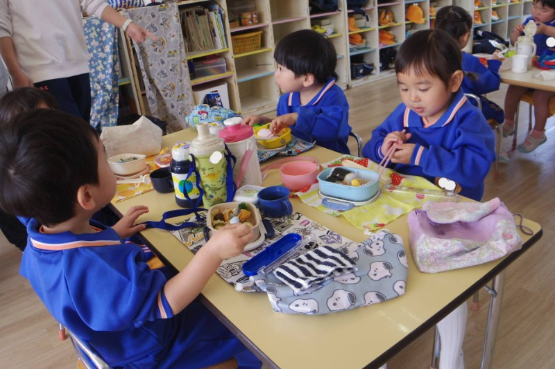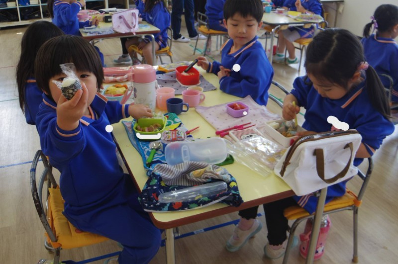 絵本「おべんとうばす」を読み、オリジナルのおべんとうを作りました。