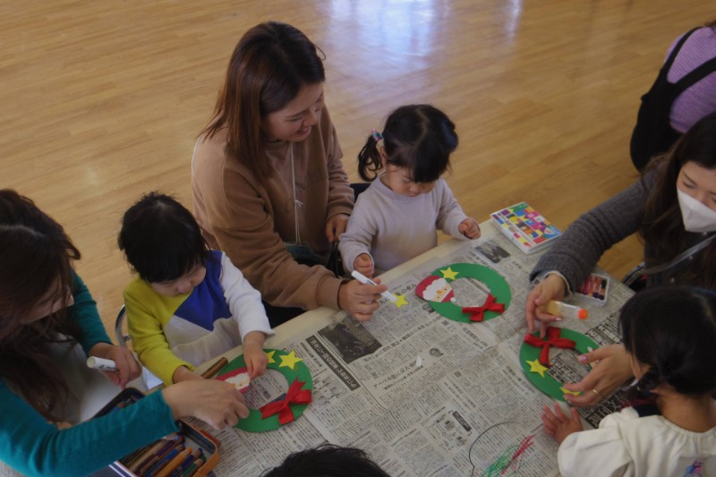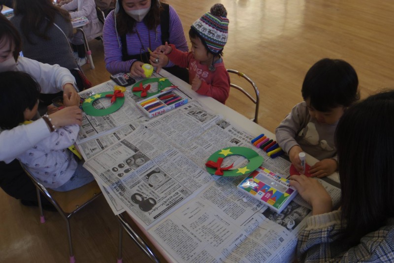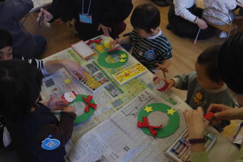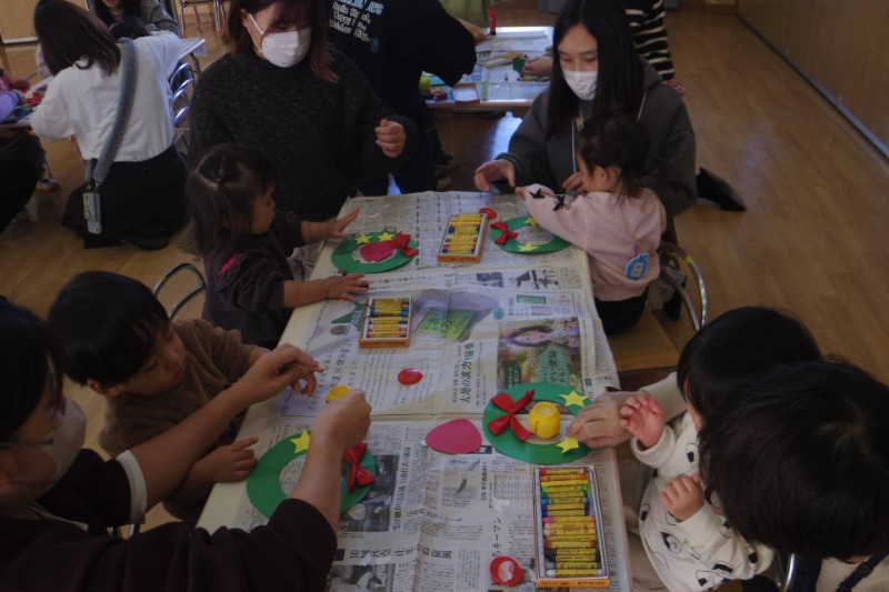 「可愛い~。」「素敵~。」と、言いながら作成し、仕上がったクリスマスリースを嬉しそうに持ち帰ってくれました。