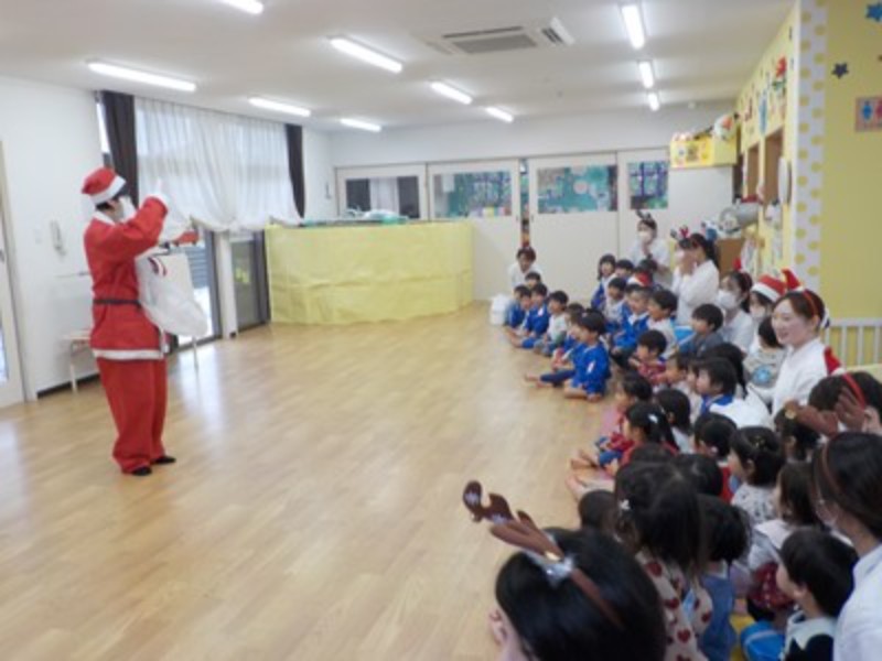 「森のクリスマス」というお話を聞いたり、クリスマスソングの演奏を聴いて一緒に歌ったり楽しく過ごしました。先生が魔法をかけると・・・サンタさんが保育園に来てくれました!!皆にプレゼントを届けてくれましたよ。サンタさんに泣き出すお友達もいましたが楽しいひと時になりました。プレゼント、お家で遊んでね!