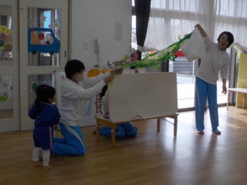 先生の出し物は「大きなかぶ」のペープサートでした。2歳児のお誕生日のお友達は株を抜くお手伝いをしてくれました。