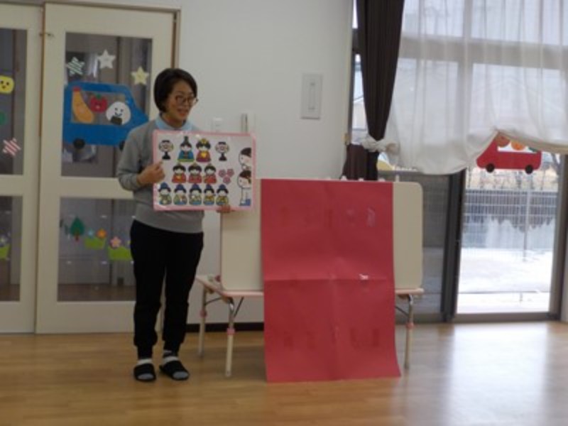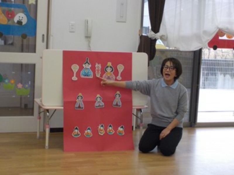 ひなまつりの紙芝居を楽しんだり、お歌を歌ってお内裏様やお雛様、他にも沢山の方がいる事を知りましたよ。
